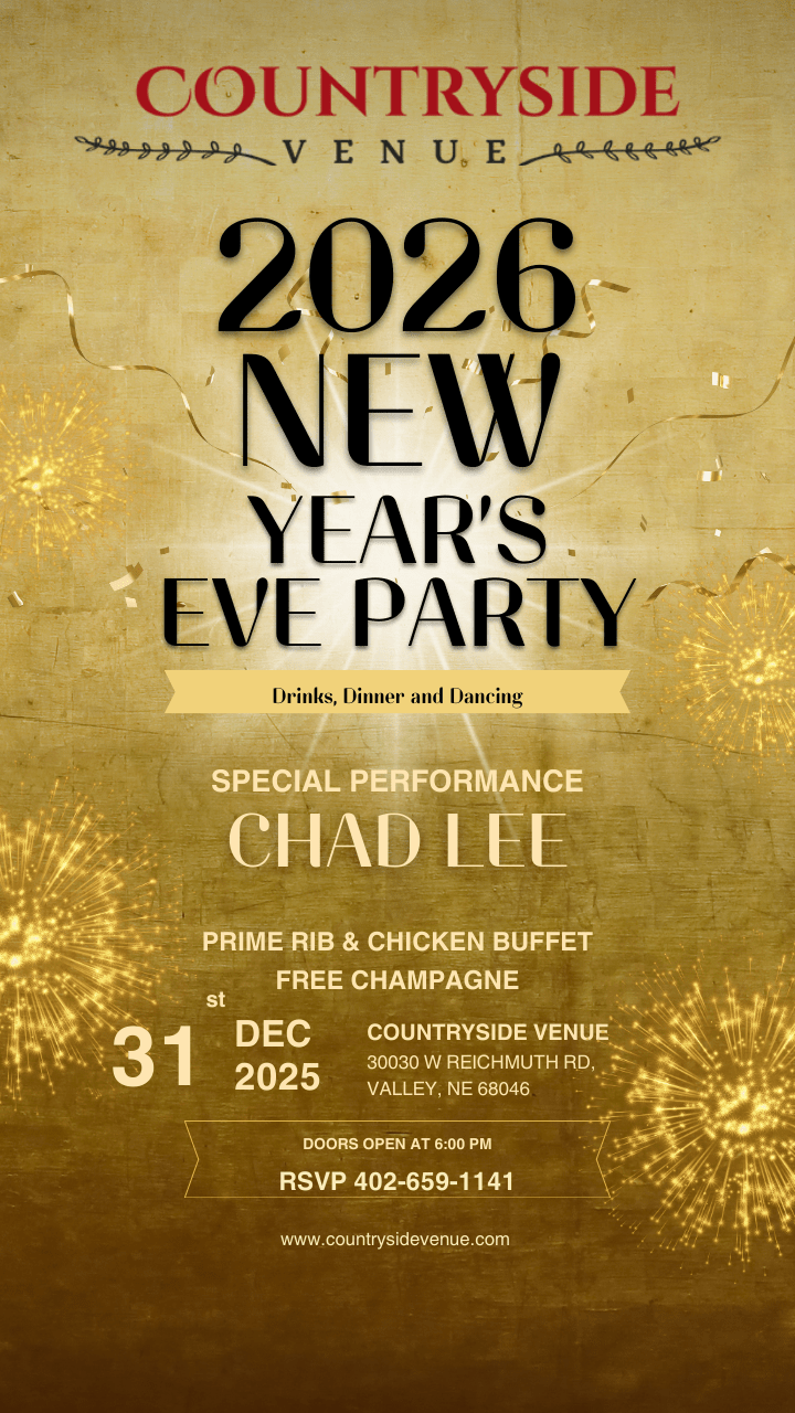 Ring in the New Year in style at Countryside Venue for the annual New Year’s Eve Party!